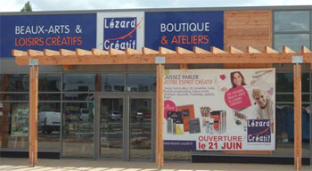 En pénétrant dans la surface de vente « Lézard Créatif » sur la zone de la Mude, les amateurs de peinture se trouveront immédiatement à l'aise parmi les produits proposés et présentés d'une manière très lisible par familles et par gammes d'articles. Tout pour le dessin et la peinture : toile, papier, crayon, fusain, pastel, la peinture huile, aquarelle, acrylique, tout ce que le dessinateur, le peintre amateur ou confirmé recherche est ici. Dans le fond du magasin de grandes tables et des bancs destinés aux ateliers. Vous ne savez pas peindre ou dessiner, mais vous voulez apprendre??